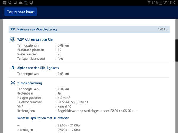 Tijdens het zoeken naar meer informatie over voor ons mogelijk interessante motorbootroutes, kwam ik terecht bij een (gratis) app die ik eind 2016 toch maar op ons tabletje en de smart phone heb gezet.